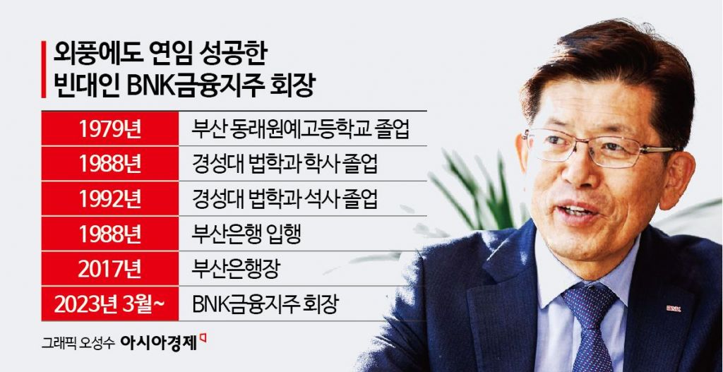 빈대인 BNK금융지주 회장이 연임에 성공했다. 후보 추천 과정이 국정감사에서 문제 제기될 만큼 외풍이 있었으나 실적 반등과 밸류업(기업가치 제고), 내부통제 설계 등 성과를 거둔 게 임원후보추천위원회(임추위)의 선택을 끌어낸 것으로 보인다. 정부 여당 등 여권에서 압박이 있었던 만큼 정부 정책에 '코드'를 맞출 것으로 보이며 지주 내 은행 실적 부진도 만회해야 하는 과제가 남아 있다.