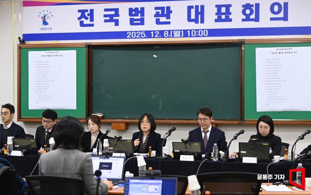 김예영 법관대표회의 의장이 8일 경기 고양시 일산 사법연수원에서 열린 전국법관대표회의에서 회의를 주재하고 있다. 있다. 2025.12.08 윤동주 기자