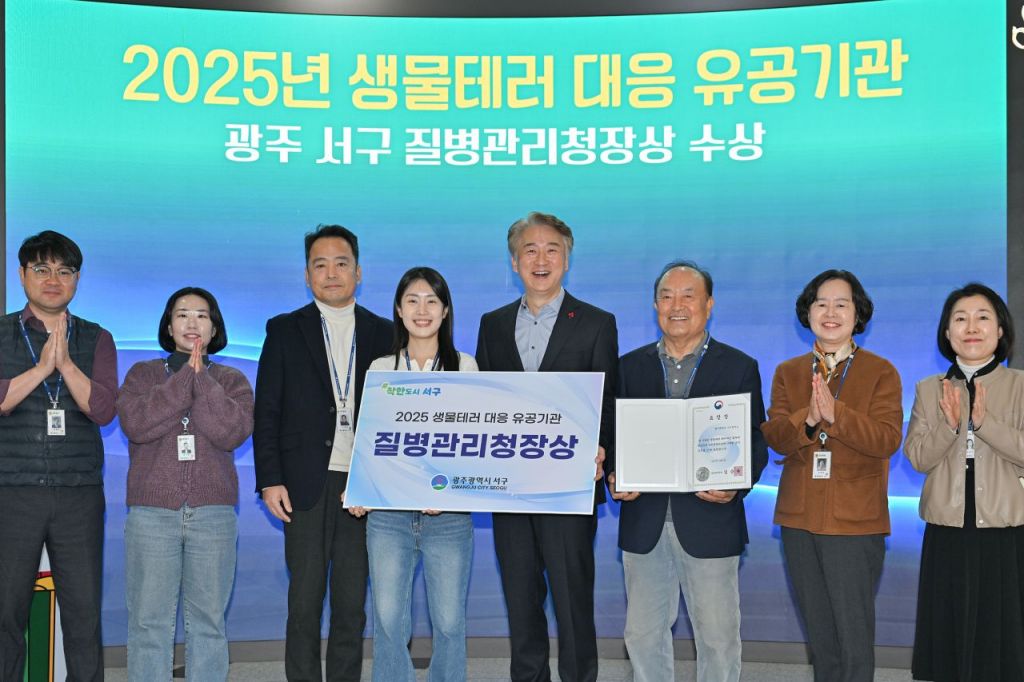 광주시 서구가 '2025 생물테러 대응 유공기관 포상'에서 우수기관으로 선정돼 질병관리청장상을 받았다.