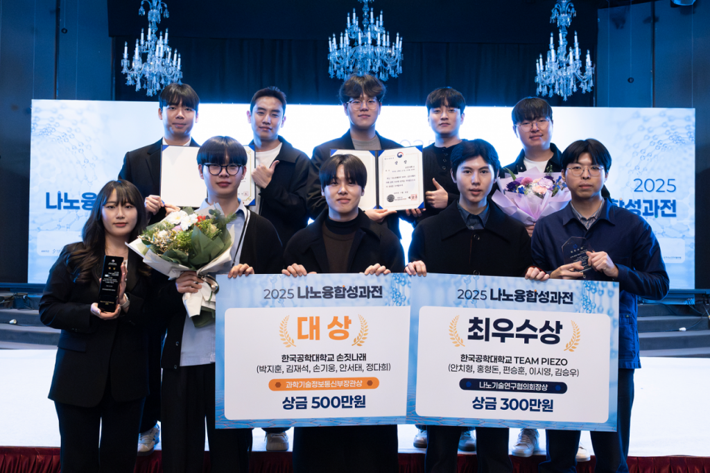 한국공학대학교 반도체공학부 학생들이 '2025 나노융합성과전'의 대표 프로그램인 '나노영챌린지'에서 대상(과학기술정보통신부 장관상)과 최우수상(나노기술연구협회장상)을 받았다.