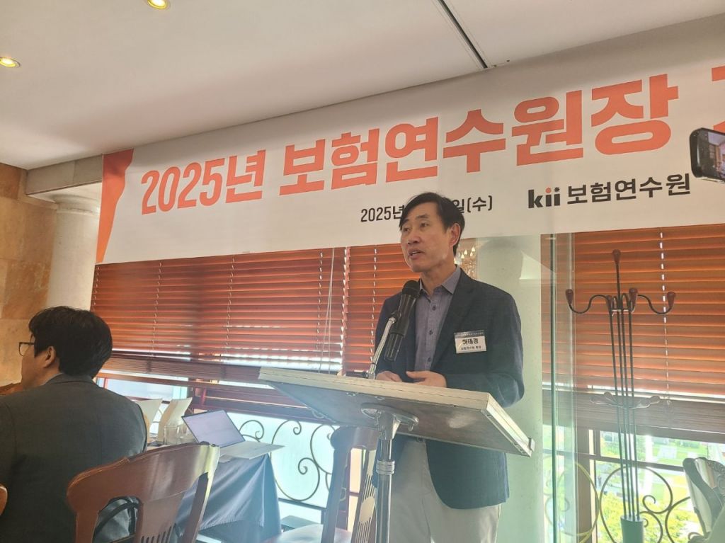 하태경 보험연수원장이 1주년 기자간담회에서 발언하고 있다. 최동현 기자