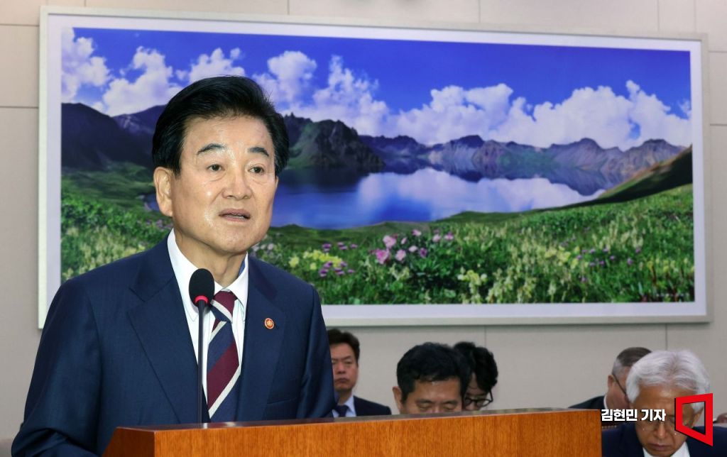 정동영 통일부 장관이 14일 국회 외교통일위원회에서 열린 통일부 등에 대한 국정감사에서 업무보고를 하고 있다. 2025.10.14 김현민 기자