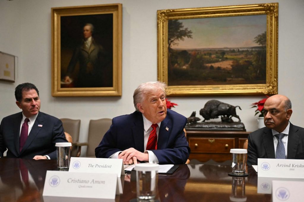 도널드 트럼프 미국 대통령(가운데)이 10일(현지시간) 백악관 루즈벨트룸에서 열린 라운드테이블에서 발언하고 있다. AFP연합뉴스