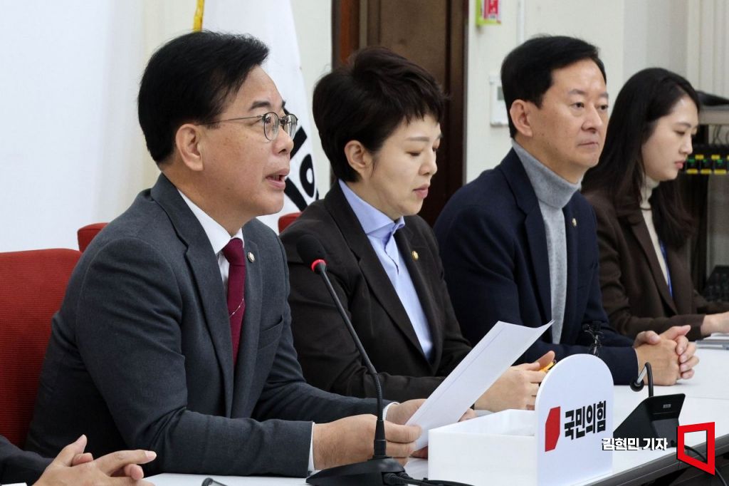 송언석 국민의힘 원내대표가 12일 국회에서 현안 관련 기자간담회를 하고 있다.