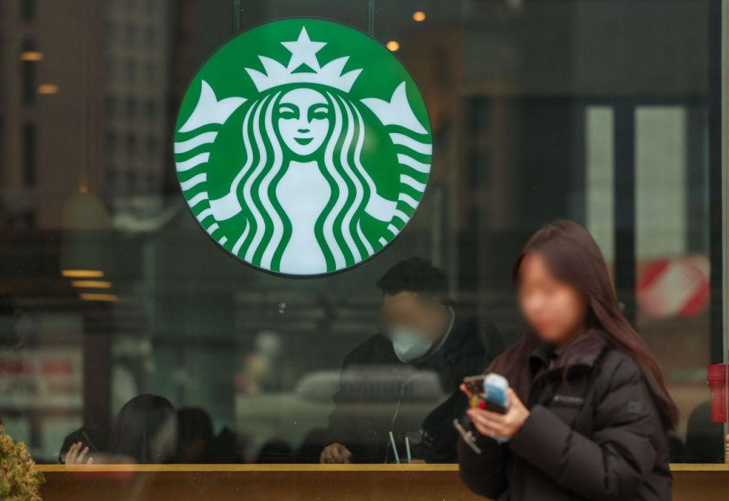 스타벅스 매장 앞을 한 시민이 걸어가고 있다. 연합뉴스