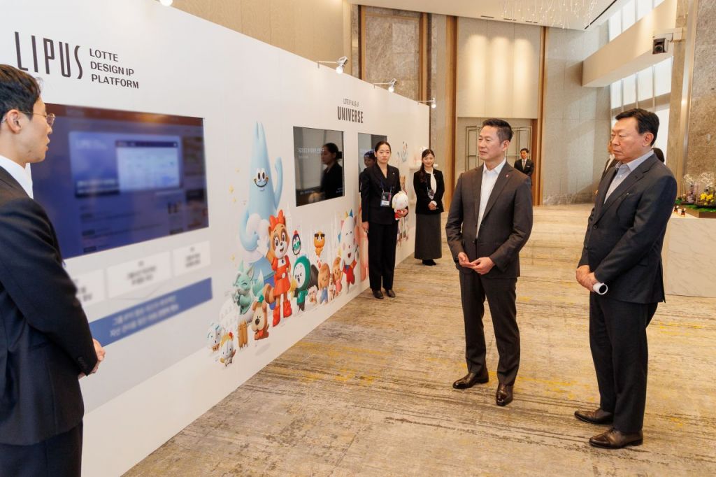회의장에는 디자인 전략 및 혁신 사례를 소개하는 전시 부스도 마련했다. 디지털 환경 변화와 사업군별 특성에 맞춰 고도화한 '그룹 CI 가이드라인 2.0', 과거 롯데웰푸드 심볼이었던 햇님마크 등 롯데가 보유한 지식재산권(IP)과 헤리티지 자산을 기반으로 디자인 IP 활용도를 높이고 강화하기 위한 '디자인 IP 밸류업 전략', 그룹 헤리티지에서 영감을 받아 개발한 '롯데 시그니처 향 개발' 사례 등을 선보였다.