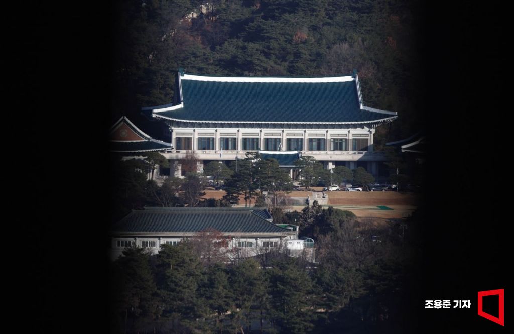 지난 12일 서울 청와대본관에서 관계자들이 유리창 청소작업을 하고 있다. 지난 2022년 5월 윤석열 정부 출범과 함께 시작된 ‘용산 시대’가 3년 7개월 만에 막을 내릴 예정이다. 2025.12.12 조용준 기자