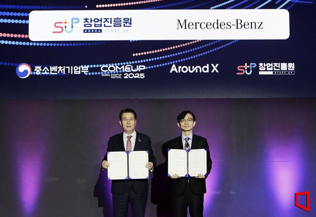 메르세데스-벤츠 코리아는 창업진흥원과 국내 스타트업 지원을 위해 '어라운드 엑스(X)' 운영 협력 업무협약(MOU)을 체결했다고 15일 밝혔다.