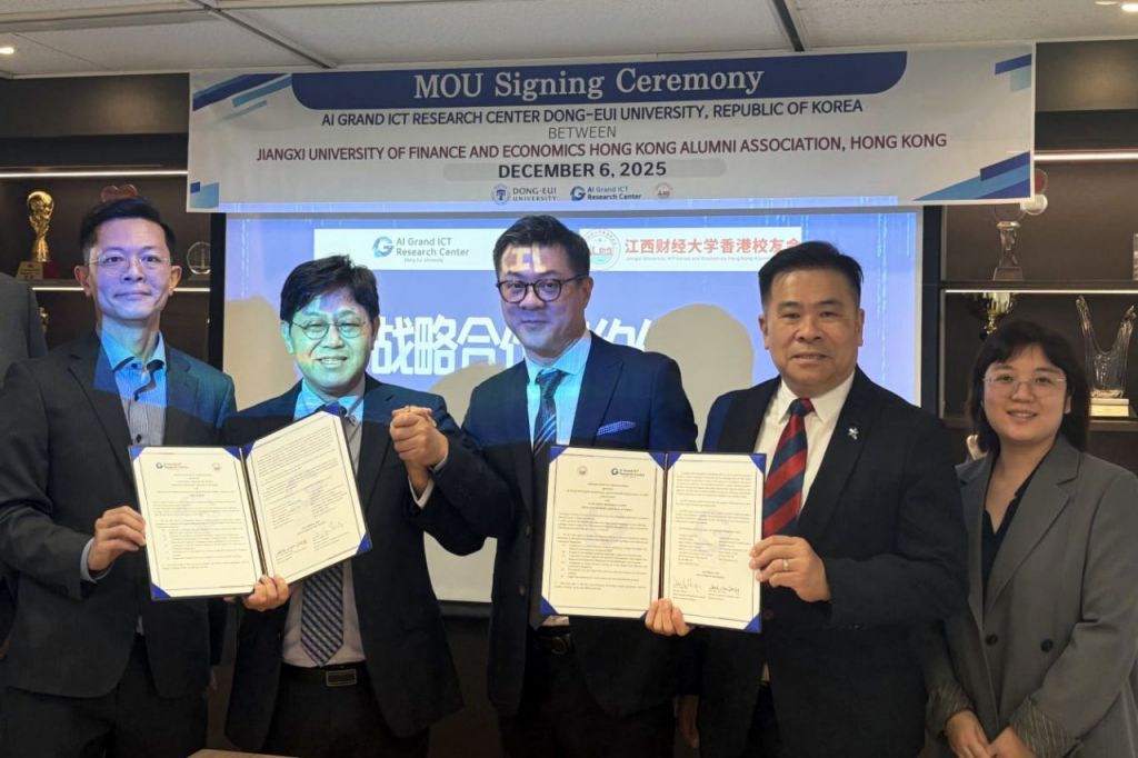 동의대학교 인공지능그랜드ICT연구센터(센터장 정석찬)가 지난 6일 홍콩에서 장시재경대학교 홍콩동문회와 국제 정보통신기술(ICT) 및 인공지능(AI) 분야 협력 강화를 위한 업무협약을 체결했다.