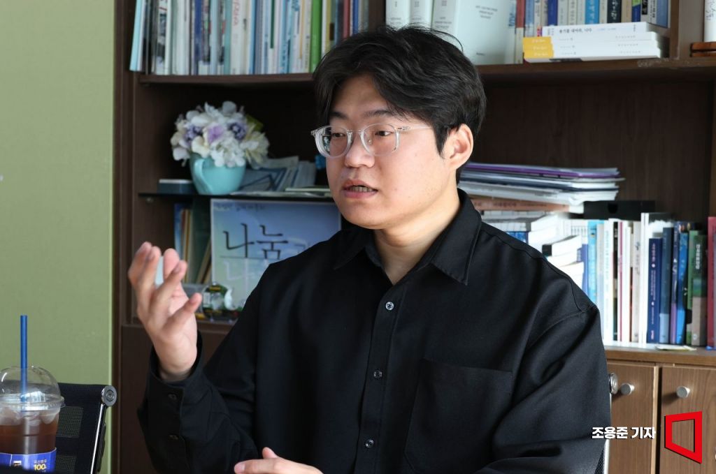 김민석 나눔과나눔 사무국장이 서울 마포구 사무실에서 아시아경제와 인터뷰 하고 있다. 조용준 기자