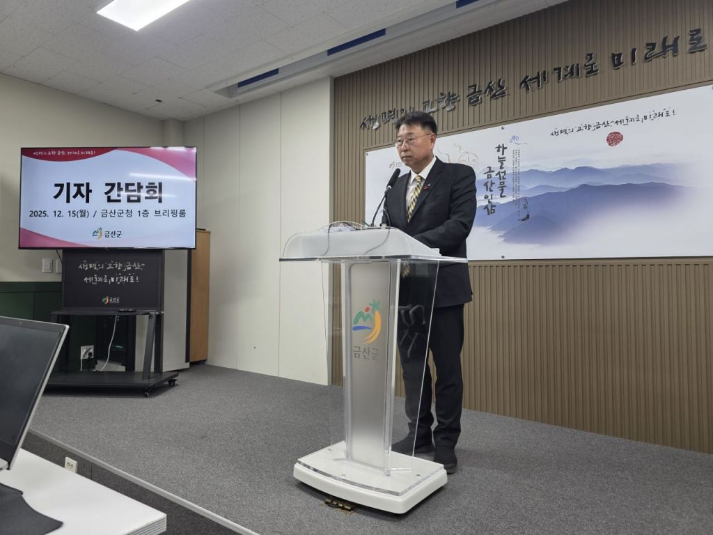 허창덕 금산군 부군수가 15일 군청 브리핑룸에서 기자회견을 열고 "지난 9월 12일 농어촌기본소득 시범사업 참여 희망 의사를 충남도에 제출했다"면서 "하지만 농림축산식품부 공모안이 발표된 이후 면밀히 검토한 결과 군 재정 현실을 고려해 고심 끝에 보류하는 것으로 조정했다"고 밝혔다.