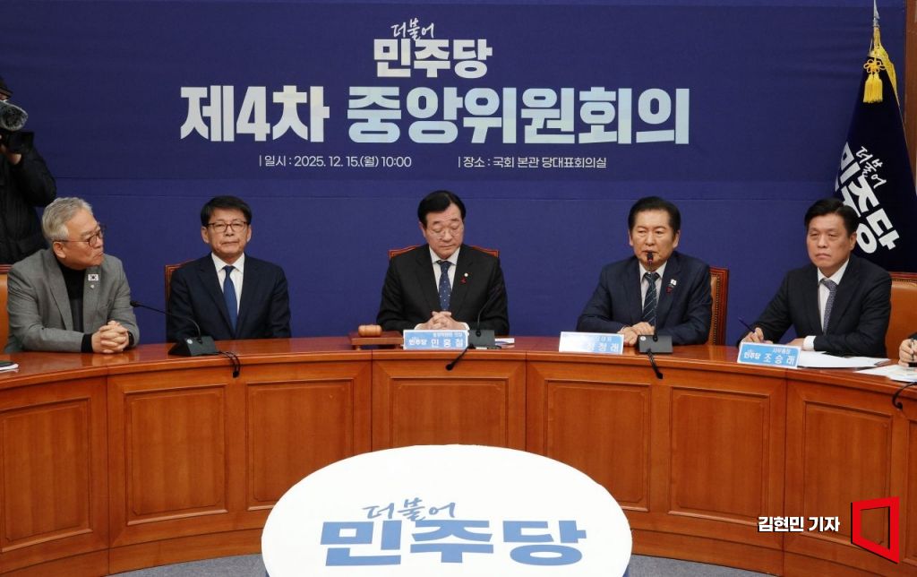 정청래 더불어민주당 대표가 15일 국회에서 열린 제4차 중앙위원회의에서 발언하고 있다. 2025.12.15 김현민 기자