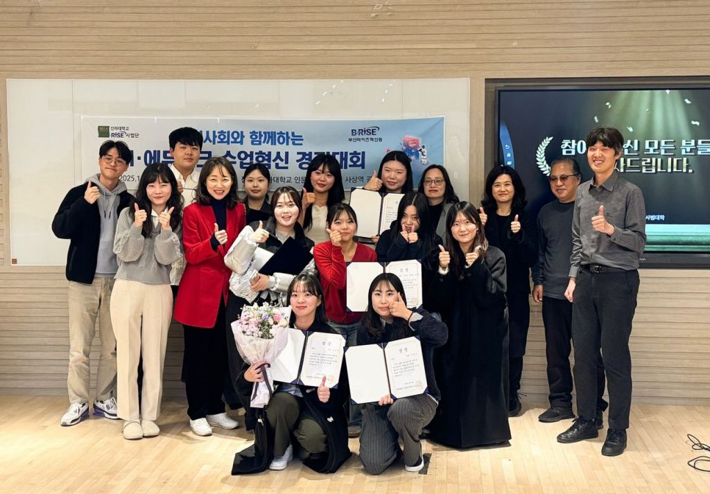 신라대학교 사범대학이 지역사회와 연계한 'AI·에듀테크 수업혁신 경진대회'를 개최하고 기념촬영하고 있다. 신라대 제공