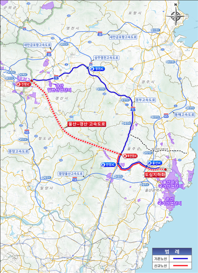 도로가 개설되면 산업물동량 이동 시간이 크게 단축돼 울산과 경북지역 기업의 경쟁력 강화와 기업 투자 환경 개선을 통한 지역 경제 활성화가 기대된다.
