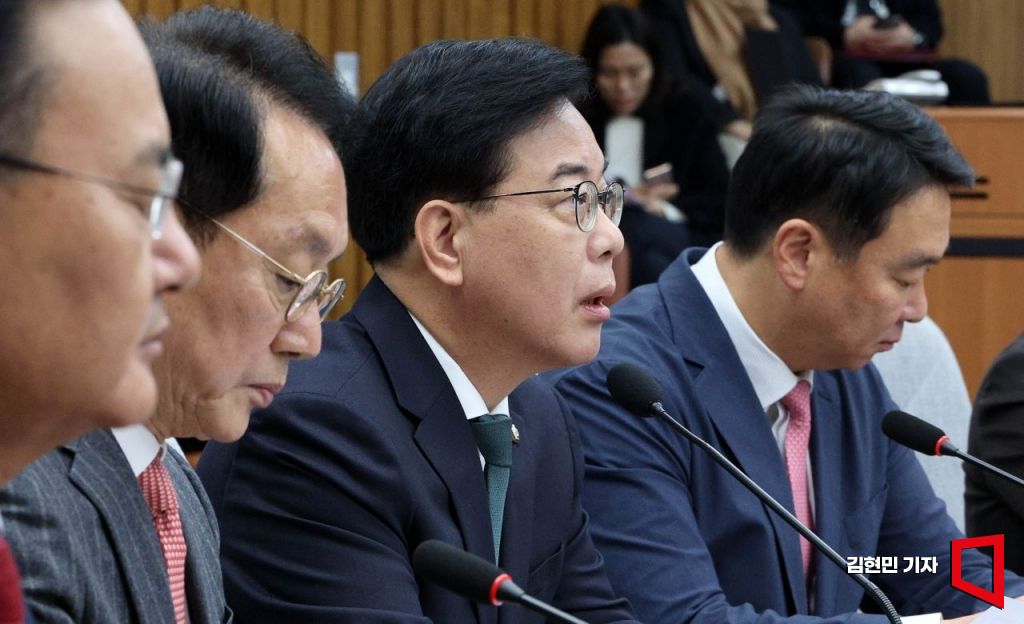 송언석 국민의힘 원내대표가 16일 국회에서 열린 원내대책회의에서 발언하고 있다.