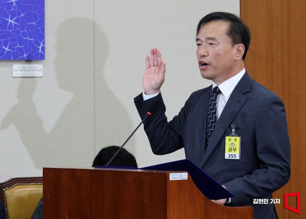 김종철 초대 방송미디어통신위원회 위원장 후보자가 16일 국회에서 열린 인사청문회에 출석해 선서하고 있다.