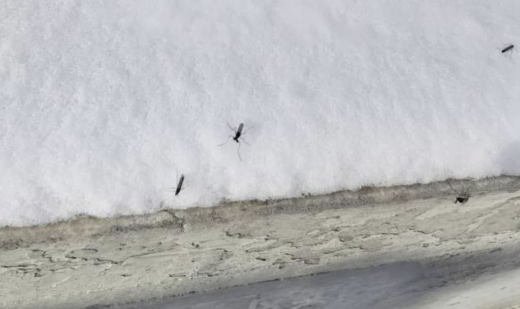 쌓인 눈 위에 모기가 앉아있는 모습이 포착됐다. 웨이보.