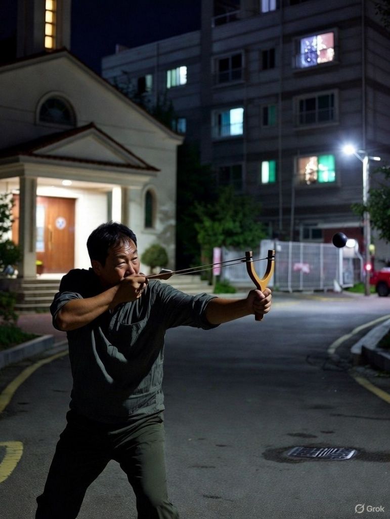 A씨는 지난달 23일 오후 9시쯤 광주 북구 삼각동 한 도로에서 새총으로 쇠 구슬 3발을 발사해 교회 현관문과 인근 아파트 유리창을 파손한 혐의를 받고 있다.