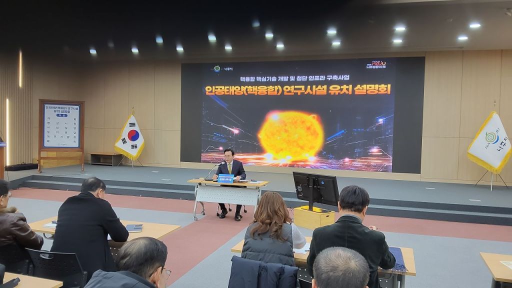 나주시는 16일 오후 시청 대회의실에서 언론인을 대상으로 인공태양 연구시설 유치 설명회를 열었다. 이날 설명회에는 방송, 통신, 신문 등 약 200여 개 언론사가 참석해 높은 관심을 보였다.