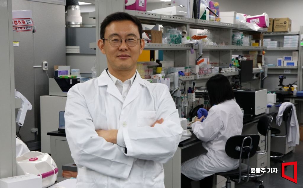 윤태영 프로티나 대표가 연구실에서 샘플분석 작업을 하고 있다. 윤동주 기자