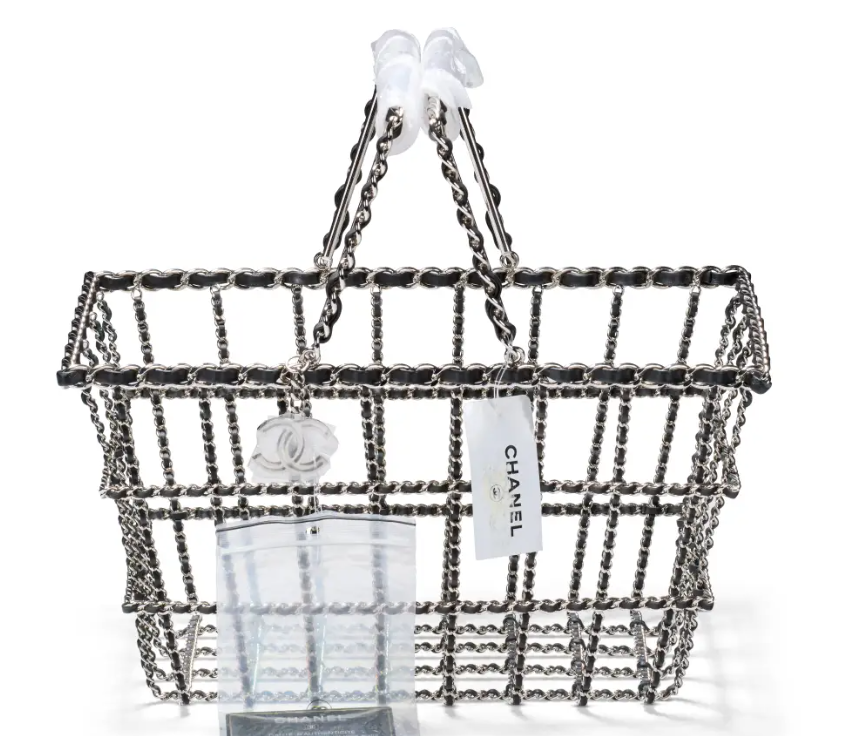이 제품은 샤넬이 2014년 가을·겨울(FW) 시즌에 선보인 실버·블랙 양가죽 소재의 'XXL 쇼핑 바스켓 백'이다. 마트 장바구니를 연상하게 하는 디자인인데, 샤넬 특유의 메탈 체인으로 가방의 전체 골격을 구성한 것이 특징이다. 가방 양옆에 손잡이가 있고, 샤넬 로고 형태의 참도 달렸다. 출시 가격은 1만2500달러(1844만원)였다.