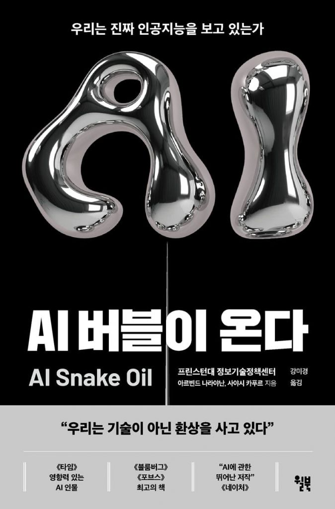 신간 'AI 버블이 온다'는 오늘날 인공지능(AI) 시장을 뱀 기름에 빗댄다. 프린스턴대 컴퓨터과학자인 아르빈드 나라야난, 사야시 카푸르 등이 공동 집필한 이 책은 AI를 둘러싼 '진짜 혁신'과 '가짜 기술'을 가르는 기준을 제시한다. 과장된 마케팅을 걷어내고, 환상이 아닌 실제로 작동하는 기술을 구분해 선택해야 한다는 문제의식이다.