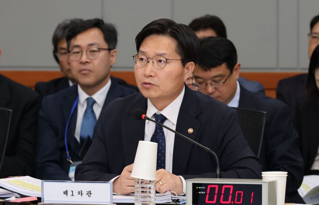 배경훈 부총리 겸 과학기술정보통신부 장관(왼쪽)이 지난 10월 13일 정부세종청사에서 열린 국회 과학기술정보방송통신위원회의 과학기술정보통신부에 대한 국정감사에서 구혁채 1차관과 대화하고 있다. 연합뉴스 제공