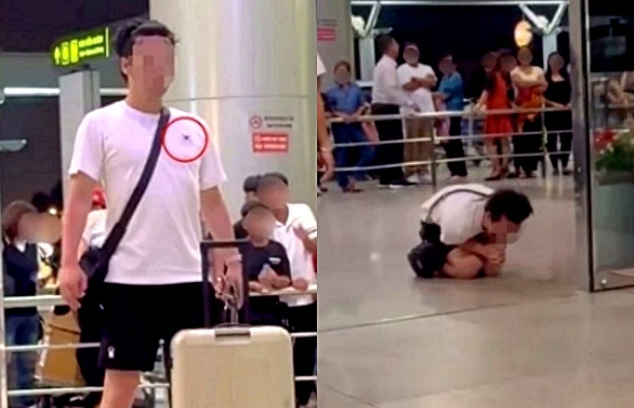 공안에 의해 비행기 밖으로 쫓겨난 뒤, 입국장 앞에서 오열하는 한국인 남성의 모습. 온라인 커뮤니티