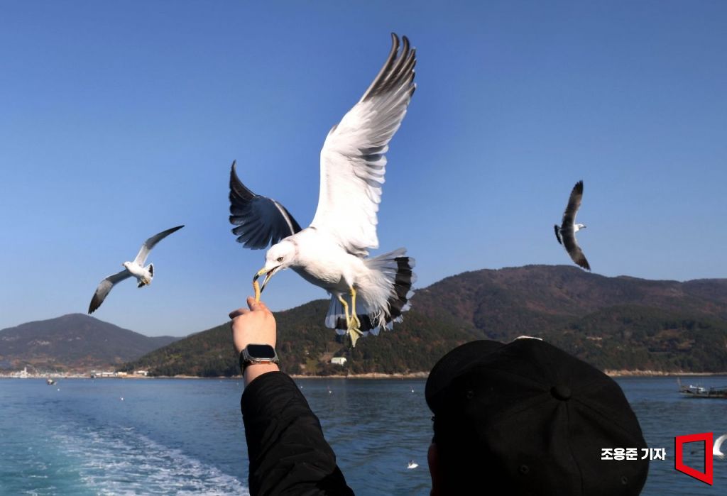 갈매기는 물고기·해조류 등 자연식을 먹어야 하지만 바닷가 주요 관광지에 있는 갈매기들은 화학조미료가 든 새우깡에 길들여져 있다. 사람들로 인해 사냥하는 야생성을 잃어 버린지 오래됐지만 새우깡을 먹기 위한 갈매기의 몸부림은 처절하다.(전남 여수)
