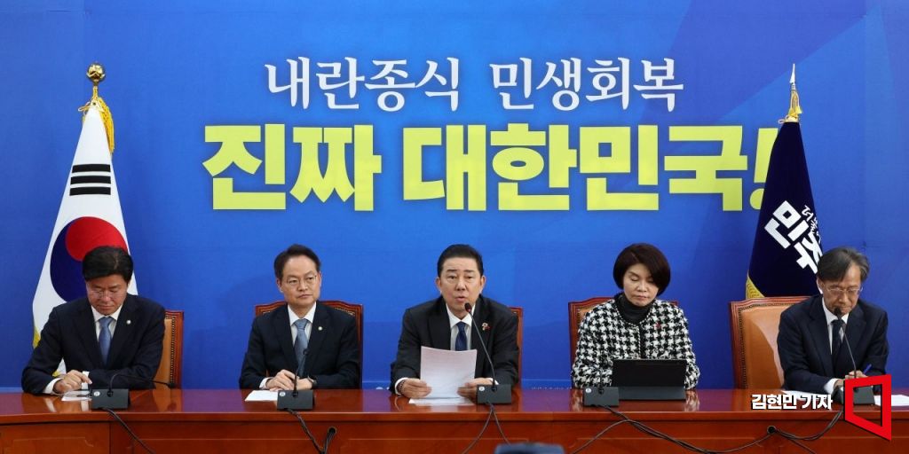 김병기 더불어민주당 원내대표가 18일 국회에서 열린 정책조정회의에서 발언하고 있다.
