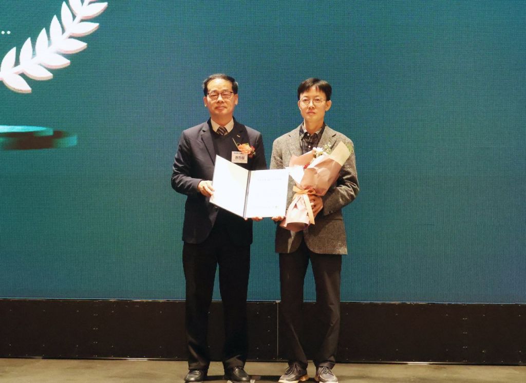 국립부경대 노영민 교수(오른쪽)가 국토교통 R&D 우수성과 20선 선정돼 수상하고 있다.
