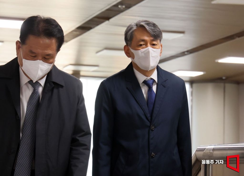 12·3 비상계엄 사태와 관련해 내란 중요 임무종사 혐의로 재판에 넘겨진 조지호 전 경찰청장이 31일 서울 서초구 서울중앙지방법원에서 열린 1심 속행 공판에 출석하기 위해 법정으로 향하고 있다. 2025. 03. 31 윤동주 기자