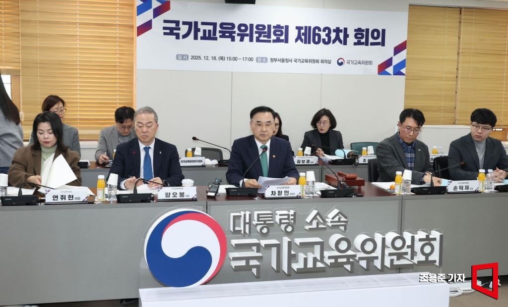 차정인 국가교육위원장이 18일 서울 종로구 정부서울청사에서 열린 제63차 전체회의에 참석, 고교학점제 등에 대해 발언하고 있다.