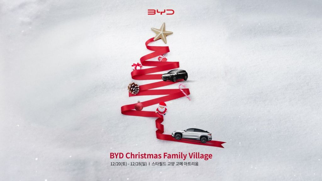 BYD코리아가 오는 12월 20일부터 28일까지 스타필드 고양 고메 아트리움에서 'BYD 크리스마스 패밀리 빌리지' 팝업 이벤트를 운영한다고 19일 밝혔다.