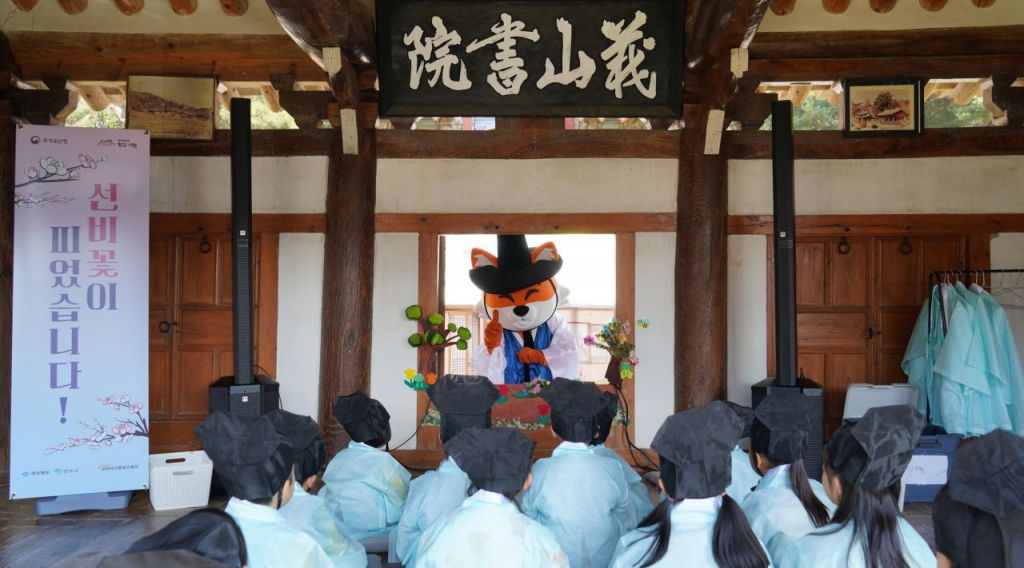 영주시가 유복 입고 예절 배우기 및 의산서원 이야기 듣기 프로그램을 진행하고 있다.