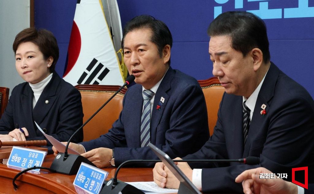 정청래 더불어민주당 대표가 19일 국회에서 열린 최고위원회의에서 발언하고 있다. 2025.12.19 김현민 기자