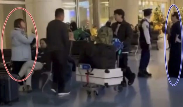 일본 도쿄 하네다공항에서 중국인으로 추정되는 한 여성(빨간색 원)이 대만인으로 추정되는 여성(파란색 원)을 향해 손가락질하며 “대만은 중국이야”라며 소리치는 모습이 포착됐다. X(엑스)