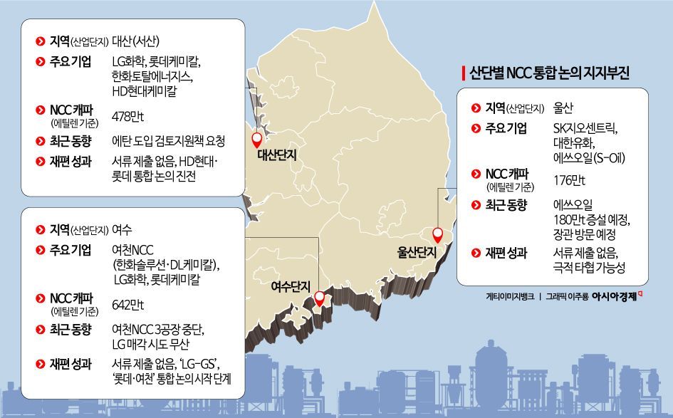 여수 석유화학 산업단지에서도 나프타크래커(NCC) 구조재편이 본격화됐다. 롯데케미칼-HD현대케미칼 충남 서산시 대산 설비 통합에 이어, 국내 석유화학 구조 개편의 '2호 사례' 재편안이 정부에 제출됐다.