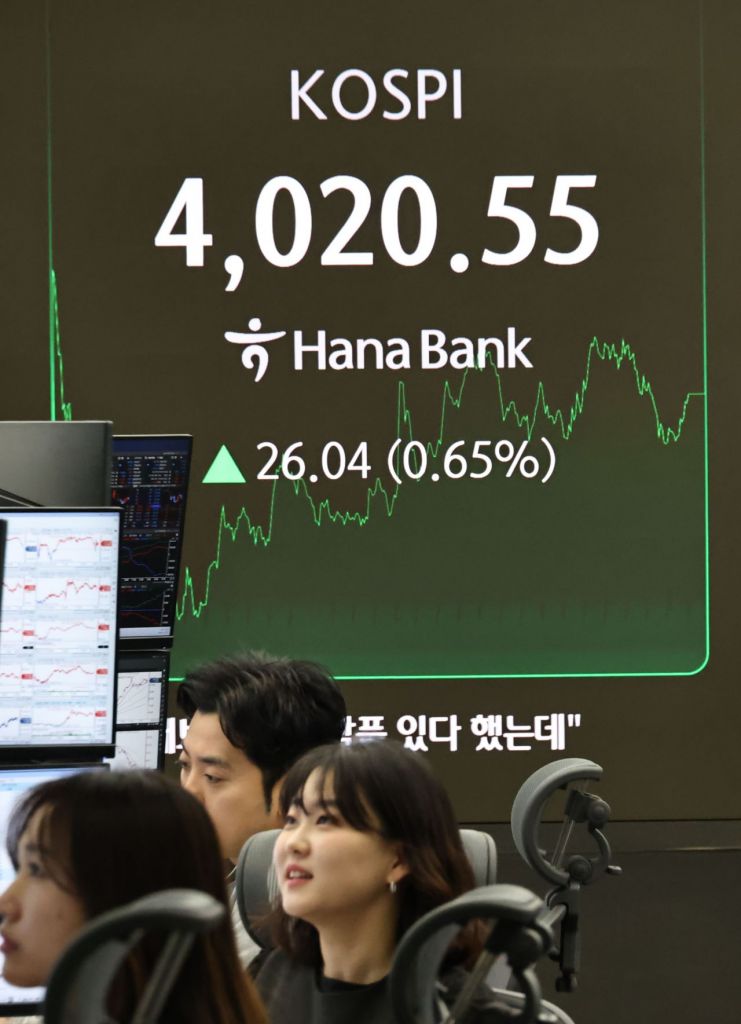 19일 서울 중구 하나은행 딜링룸 현황판에 코스피 지수 등이 표시되고 있다. 연합뉴스