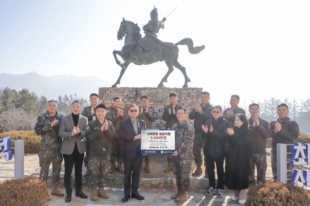 박준영 을지재단 회장이 국가 안보를 위해 묵묵히 헌신해 온 국군 장병들에게 감사의 뜻을 전하며, 또다시 사재로 방위성금을 기탁했다.