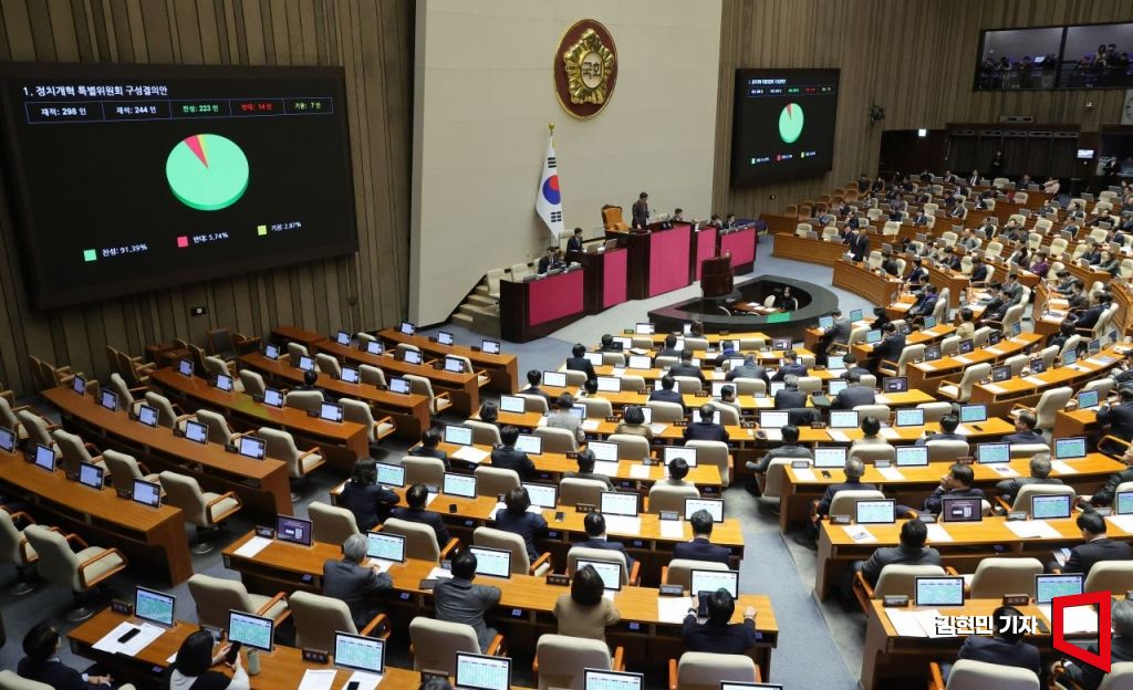 22일 서울 여의도 국회에서 열린 본회의에서 정치개혁 특별위원회 구성결의안이 통과되고 있다.