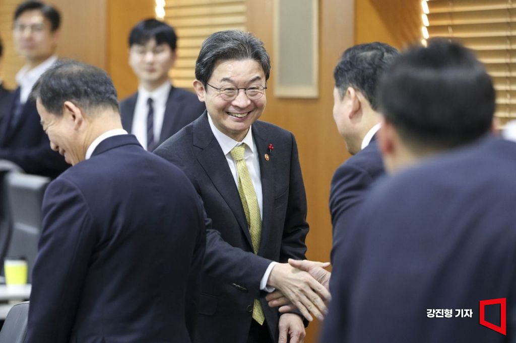 [포토] 참석자들과 인사하는 이억원 금융위원장