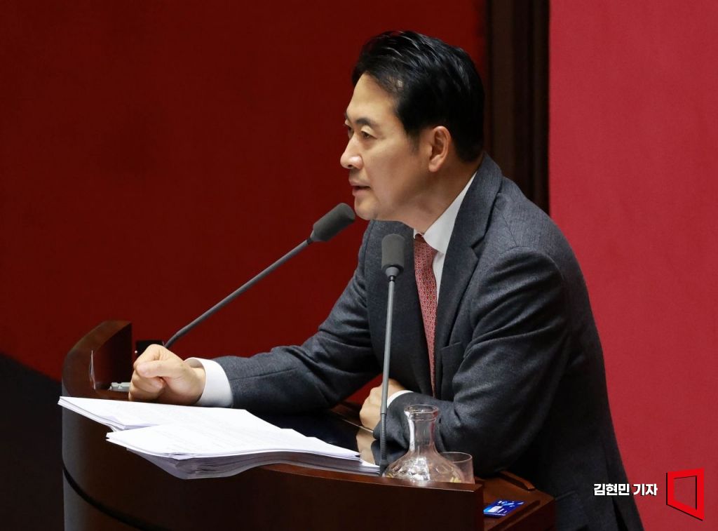장동혁 국민의힘 대표가 23일 국회 본회의장에서 12·3 윤석열 비상계엄 등에 대한 전담재판부 설치 및 제보자 보호 등에 관한 특별법에 대한 무제한 토론을 이어가고 있다. 2025.12.23 김현민 기자