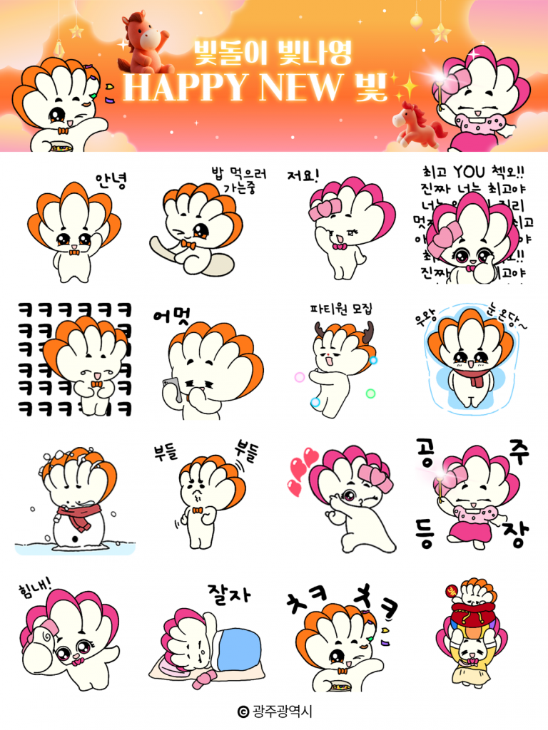 광주시는 24일 오후 2시부터 공식 카카오톡 채널을 통해 시 대표 캐릭터 '빛돌이·빛나영' 이모티콘 16종을 무료 배포한다. 대상은 선착순 5만명이다.