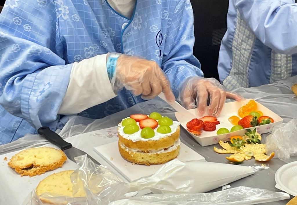 안산자생한방병원 환자들이 생크림 케이크 만들기를 주제로 원데이 클래스에 참여하고 있다. 자생한방병원