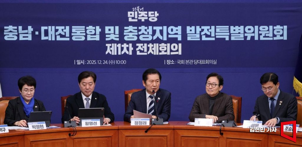 정청래 더불어민주당 대표가 24일 국회에서 열린 대전·충남 통합 및 충청지역 발전 특별위원회 제1차 전체회의에서 발언하고 있다.