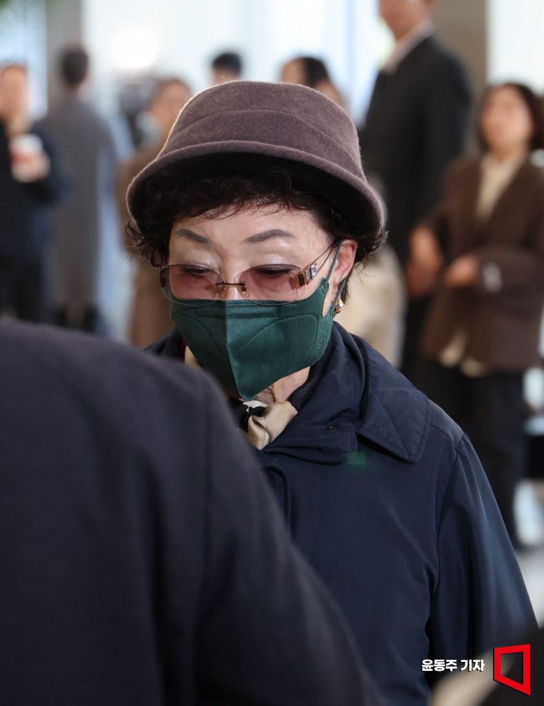 김건희 씨의 모친 최은순 씨가 4일 서울 광화문kT빌딩에 마련된 김건희 특검 사무실로 피의자 조사를 받기 위해 출석하고 있다. 2025.11.04 윤동주 기자