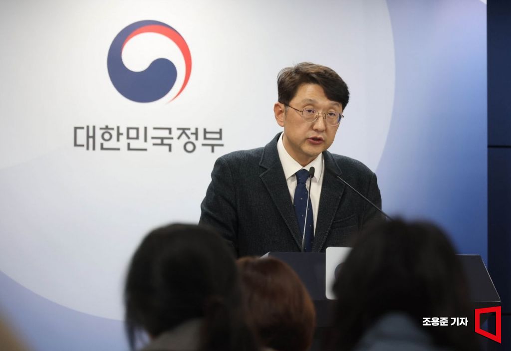 최우혁 과학기술정보통신부 네트워크정책실장이 24일 서울 종로구 정부서울청사에서 휴대전화 개통시 안면인증 관련 브리핑을 하고 있다.