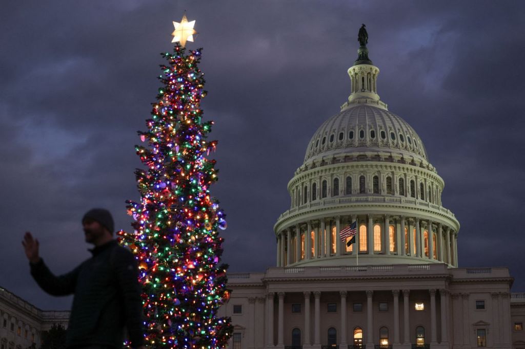 23일(현지시간) 미국 워싱턴DC 국회의사당 앞에 크리스마스트리가 세워져 있다. 로이터연합뉴스