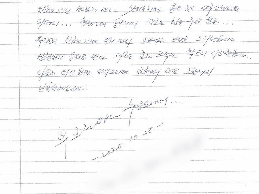 이어 "한국분들의 응원을 받아 새로운 꿈과 포부가 싹트기 시작했다"며 "한국에서 만날 그날까지 안녕히 계십시오"라고 덧붙였다. 편지에는 두 사람의 서명도 담겨 있는 것으로 전해졌다.